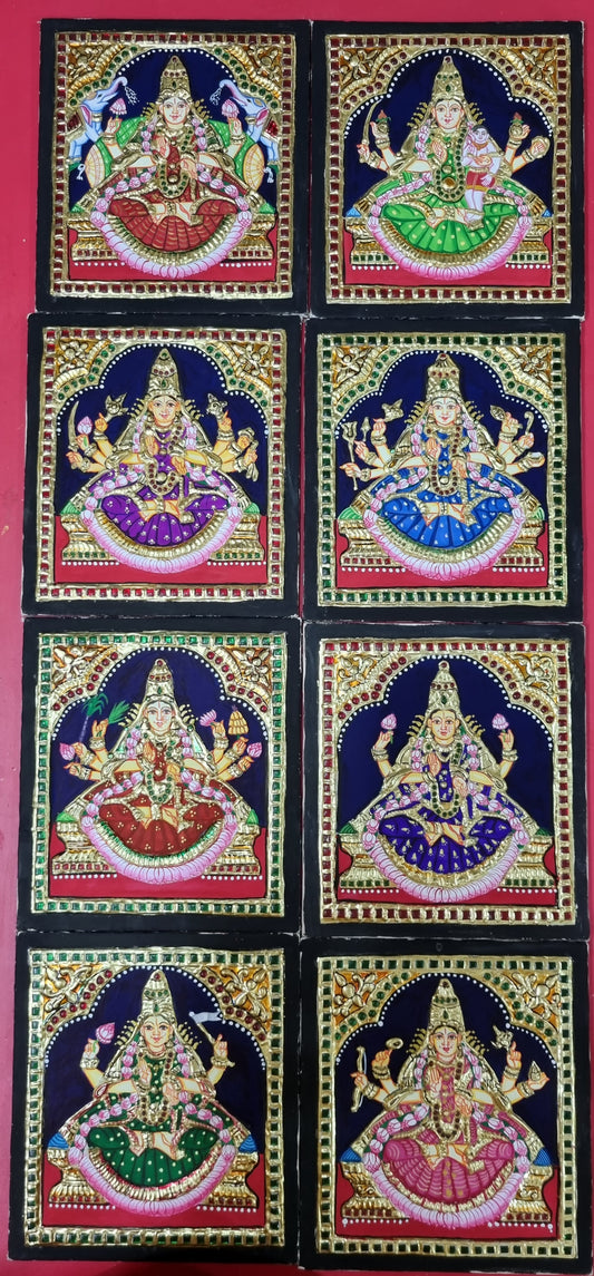 ORIGINAL HANDMADE NAVRATRI (ASHTALAKSHMI) GOLD FOIL TANJORE PAINTING