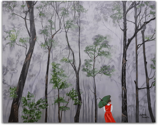 ORIGINAL HANDMADE WALK ON A RAINY DAY OIL PAINTING