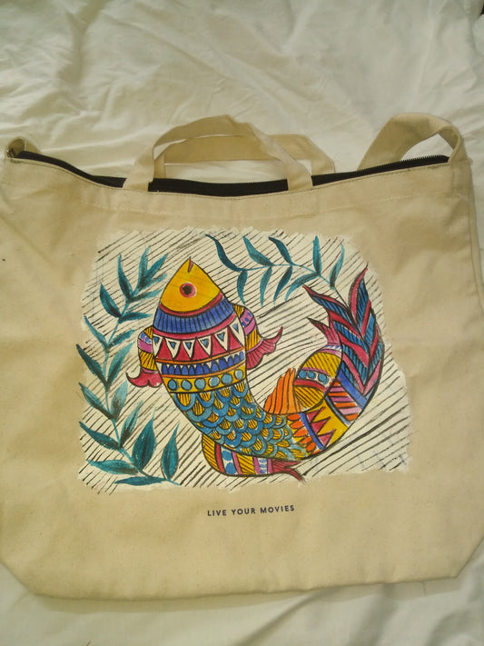 ORIGINAL HAND PAINTED MADHUBANI TOTE BAG