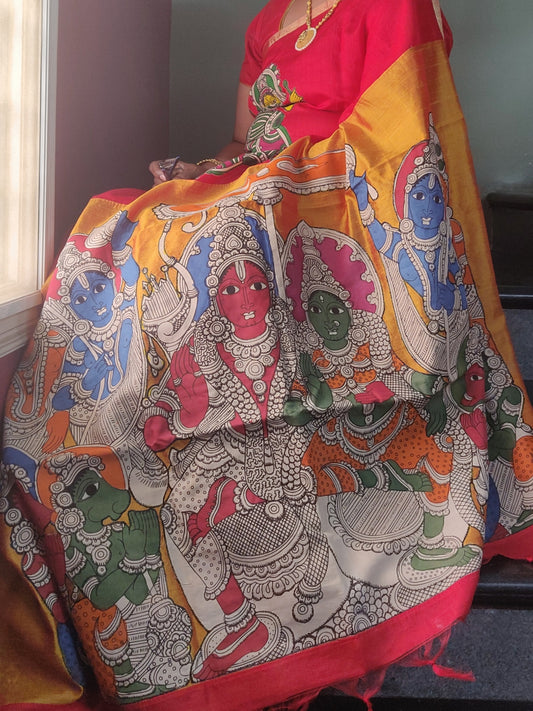 ORIGINAL HAND PAINTED KALAMKARI RAMAYANA HERITAGE SAREE