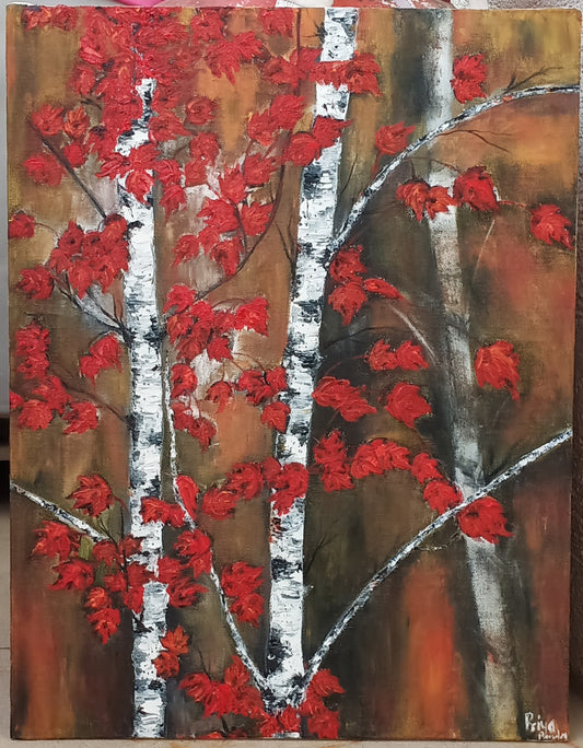 ORIGINAL HANDMADE AUTUMN TREES OIL PAINTING
