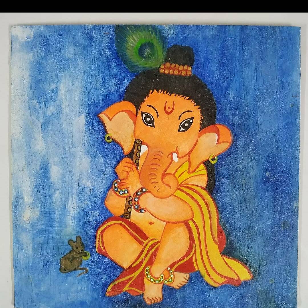TITLE- BAAL GANESHJI , MATERIAL- BOARD MEDIUM- ACRYLIC COLOURS ITS TAKE 5 -6 DAYS