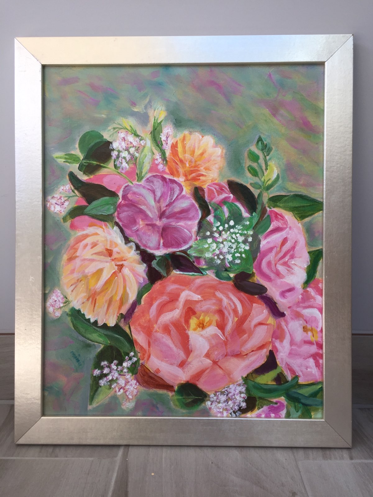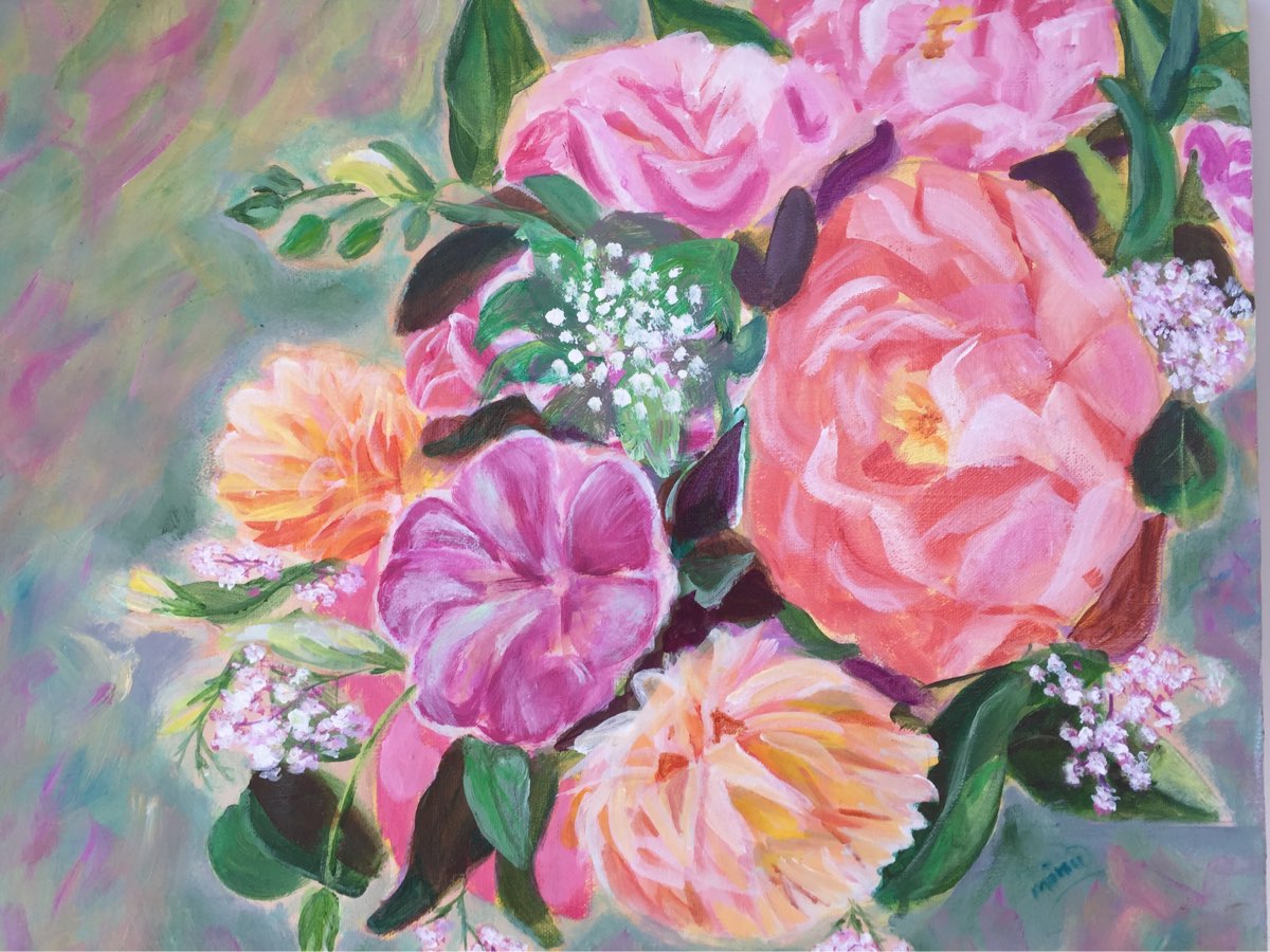 ORIGINAL HANDMADE BOUQUET OF PEONIES PAINTING