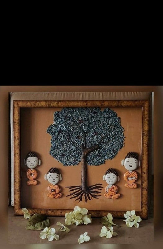 Buddha stone art is based on the concept of the followers of buddha preaching his practice. this stone art is made up of natural stones covered with acrylic paints which are durable in nature (suitable in all weather conditions).